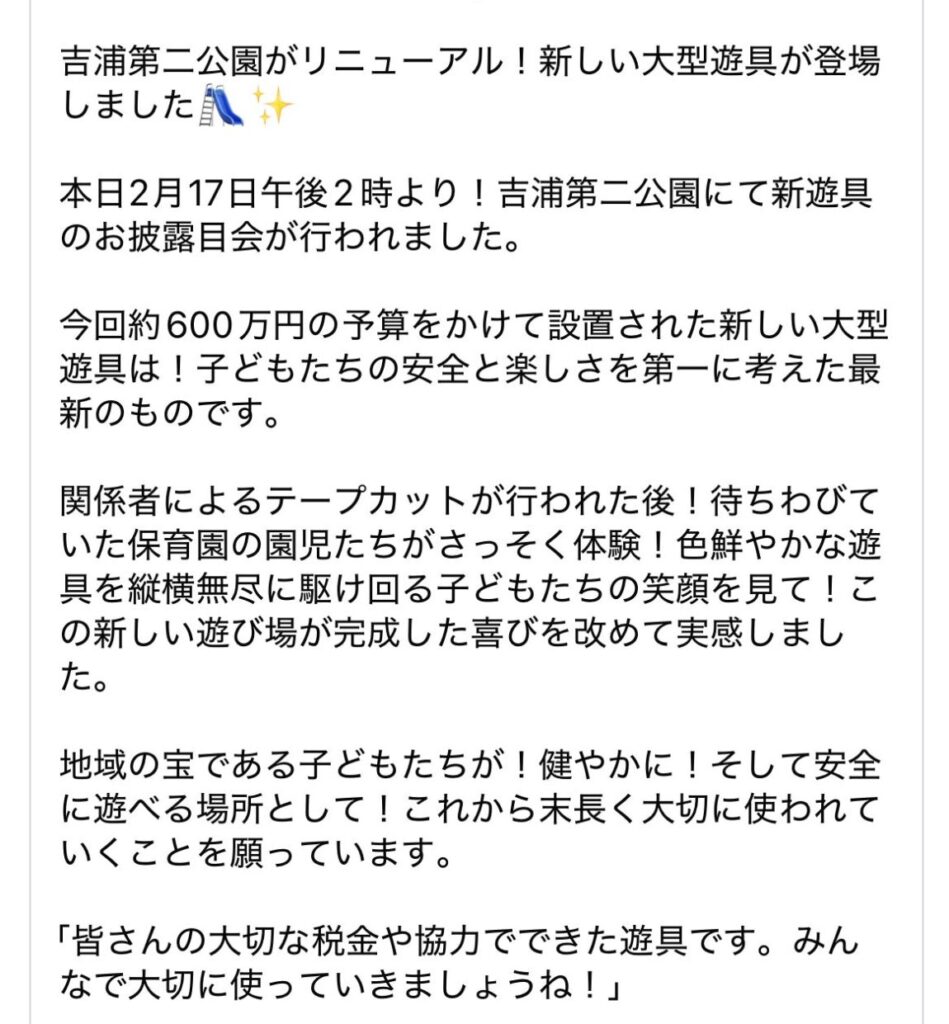 吉浦第二公園に新しい遊具が来ました✨