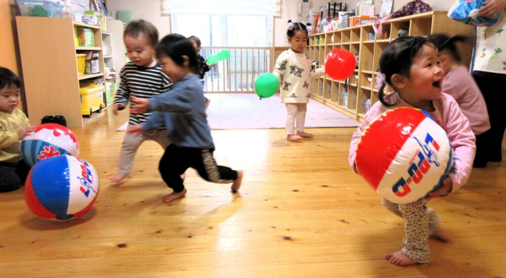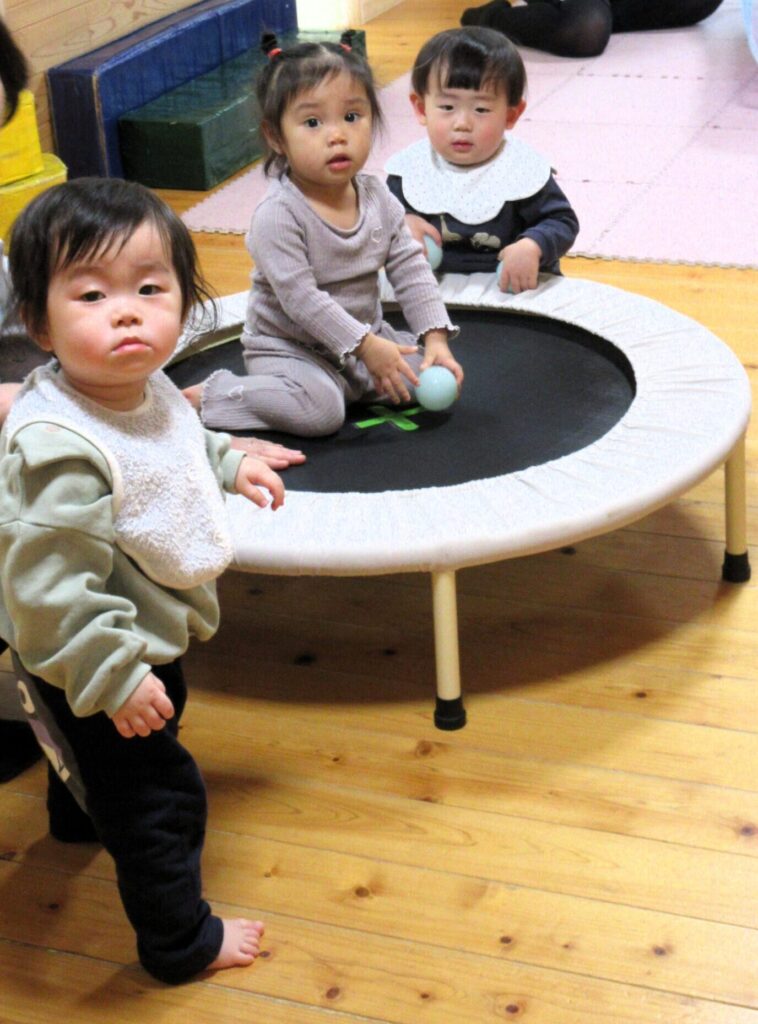 両足跳びは、1歳児ではジャンプする感覚が備わっていないと難しいんですよ。