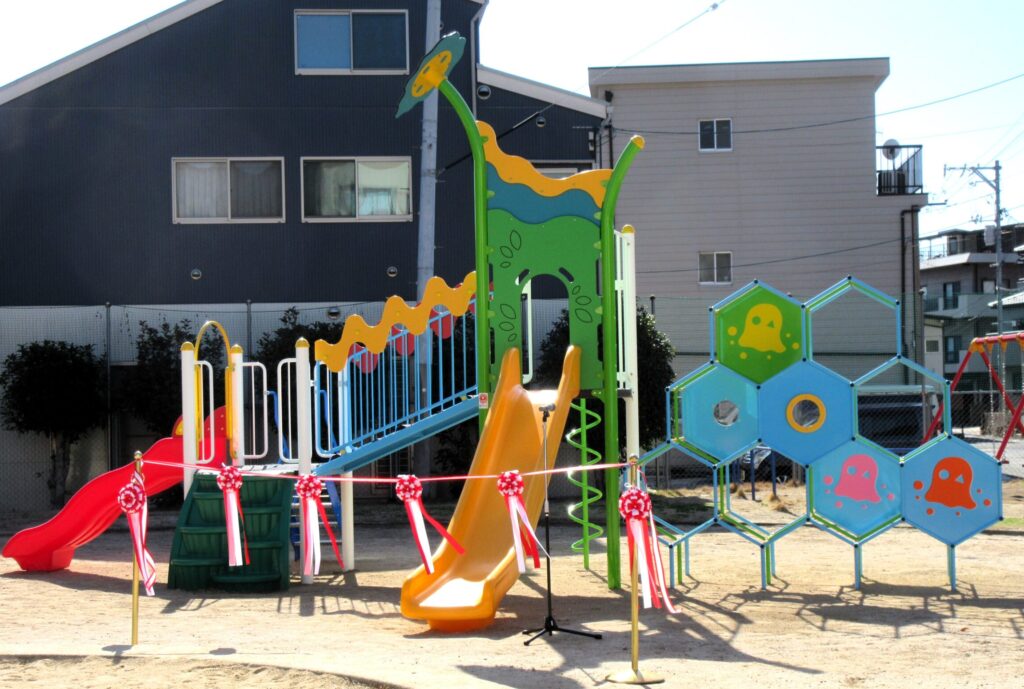 老朽化していた遊具の安全性とこどもたちの要望があり、設置が実現されたようです。