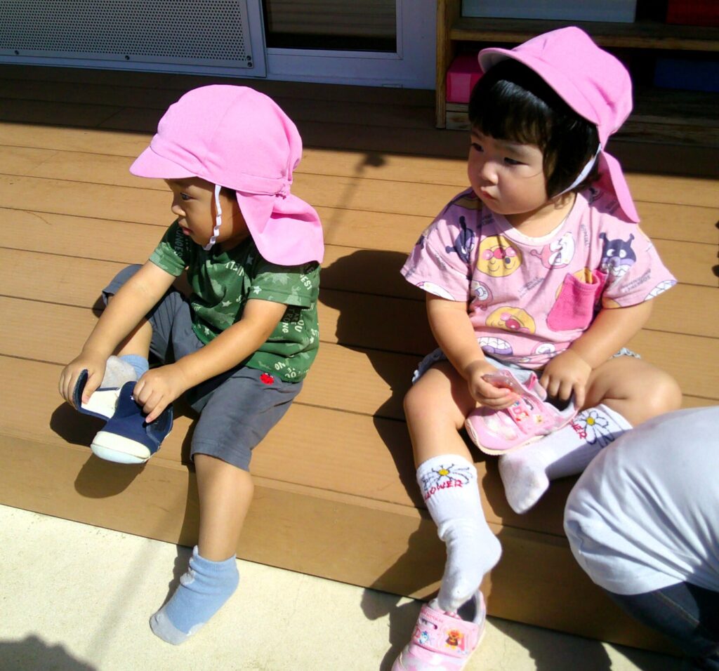 水遊びの時期はサンダルを使用するので、靴下は履いていません。