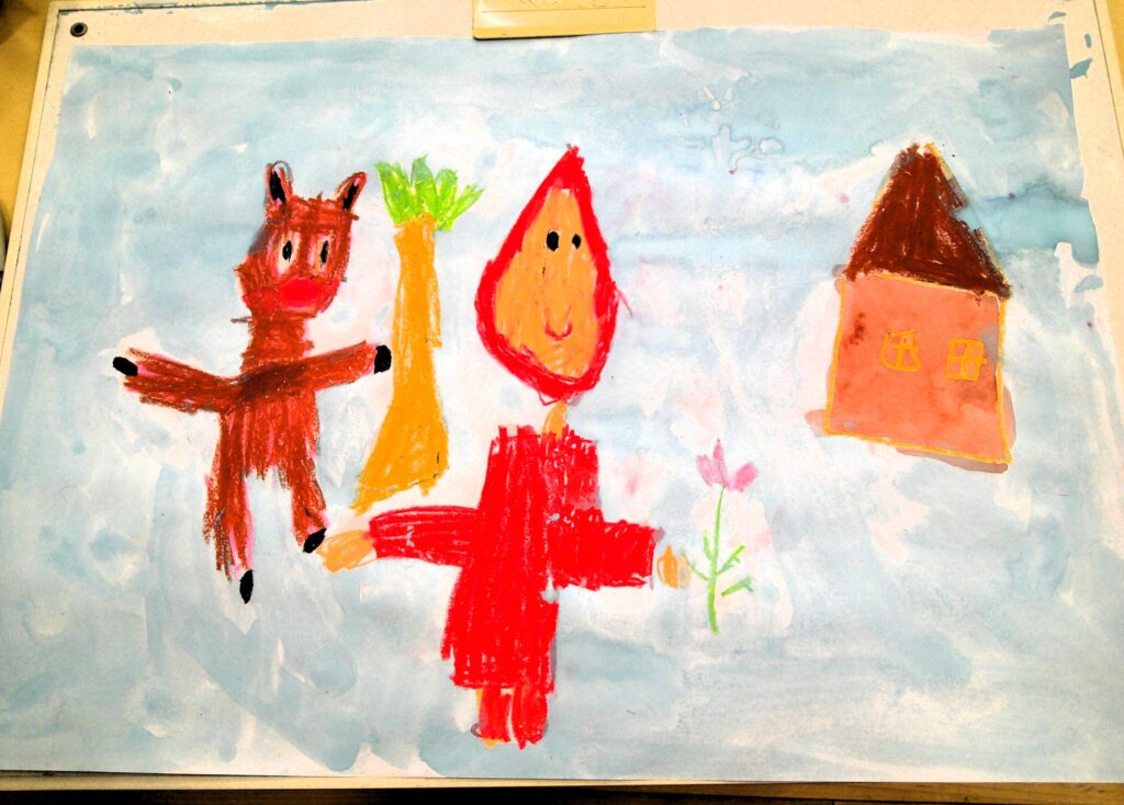 登場人物は、赤ずきんちゃんとオオカミを描いているお友達が多かったです。