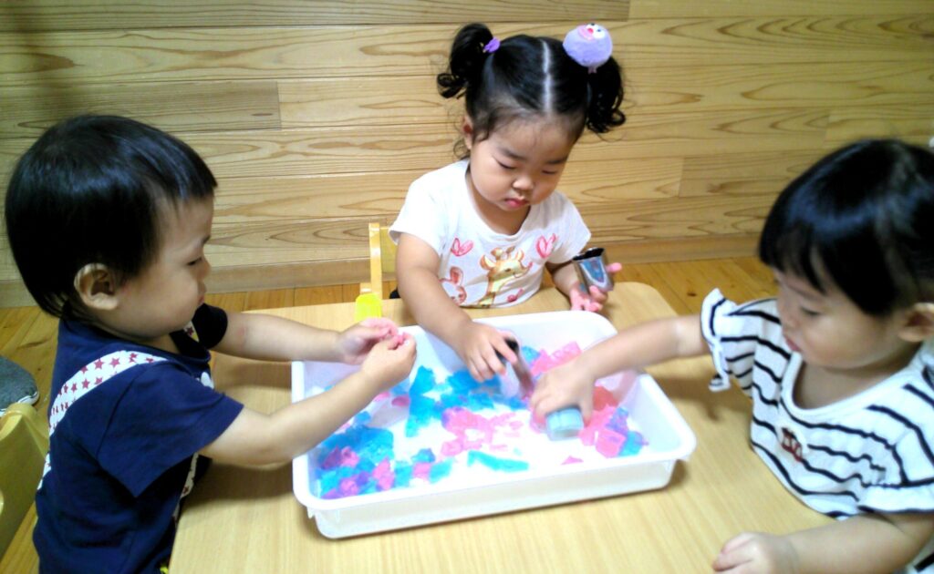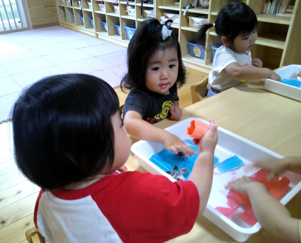 寒天遊びでは前回感触遊びとして触れることができたので、