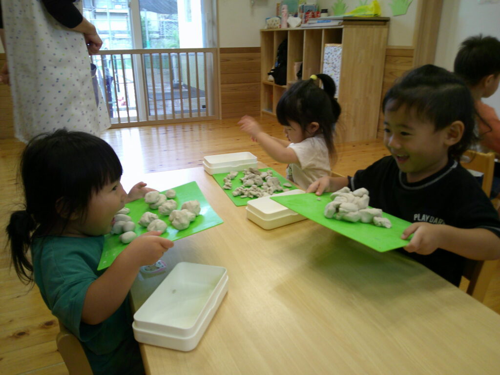 ルールとして、遊びを始める前に、「たべないでね。」って遊ぶお約束をして始めました。