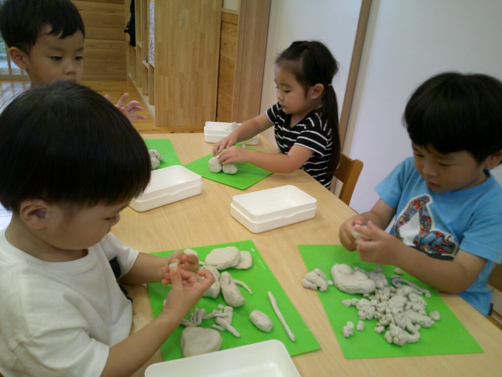 粘土の感触を楽しむことで、触感の感性が育めたらいいなと思います。