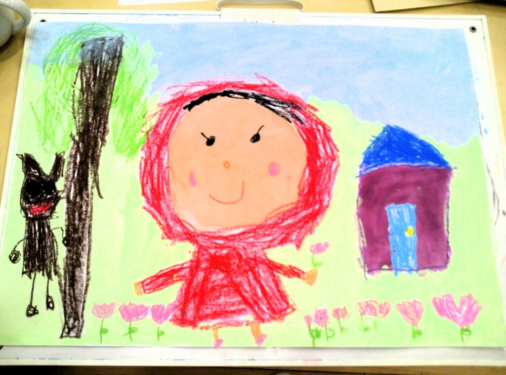 好きなほうの絵を選んで描いてもらったらみんな「あかずきんちゃん」を描きました。