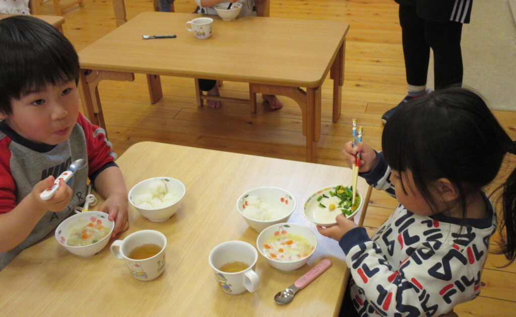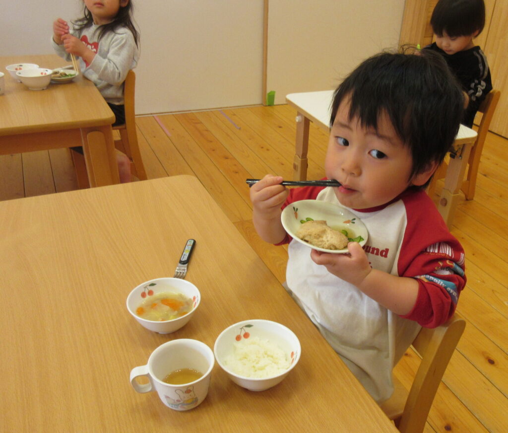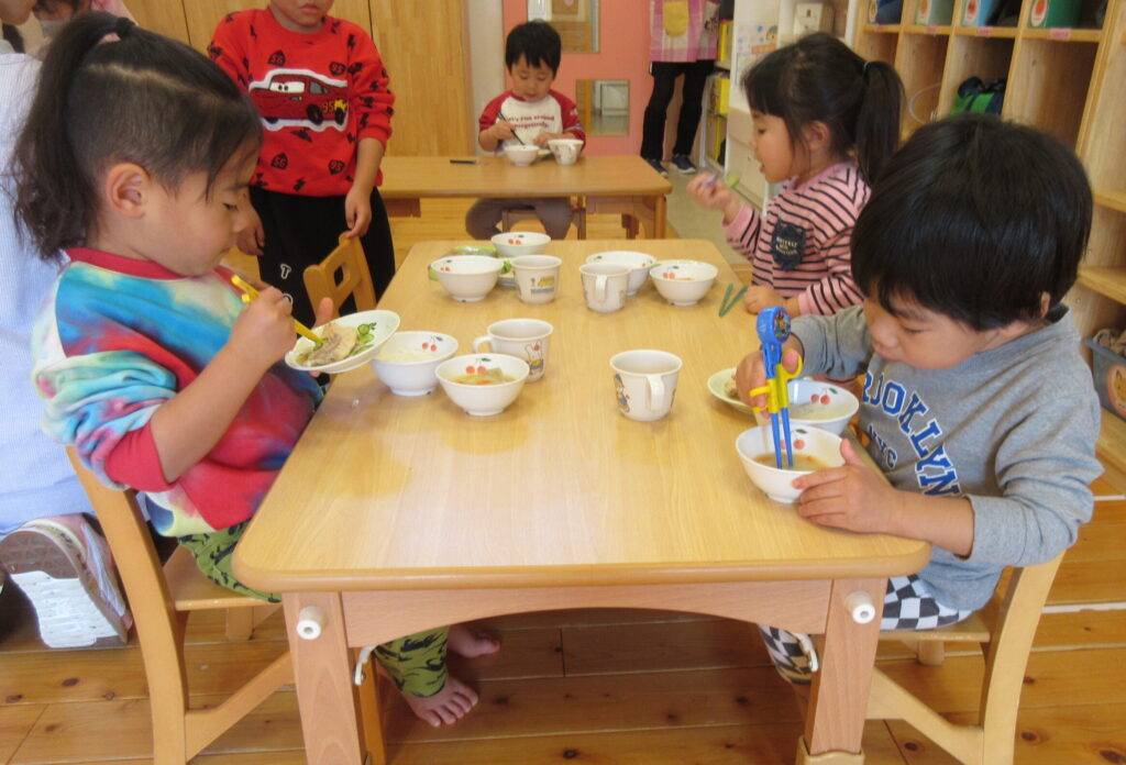 ひよこぐみさん~しろぐみさんの全園児と先生が、おいしく♡いただきました。
