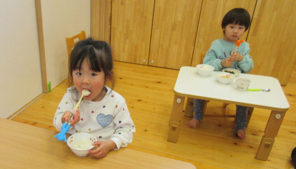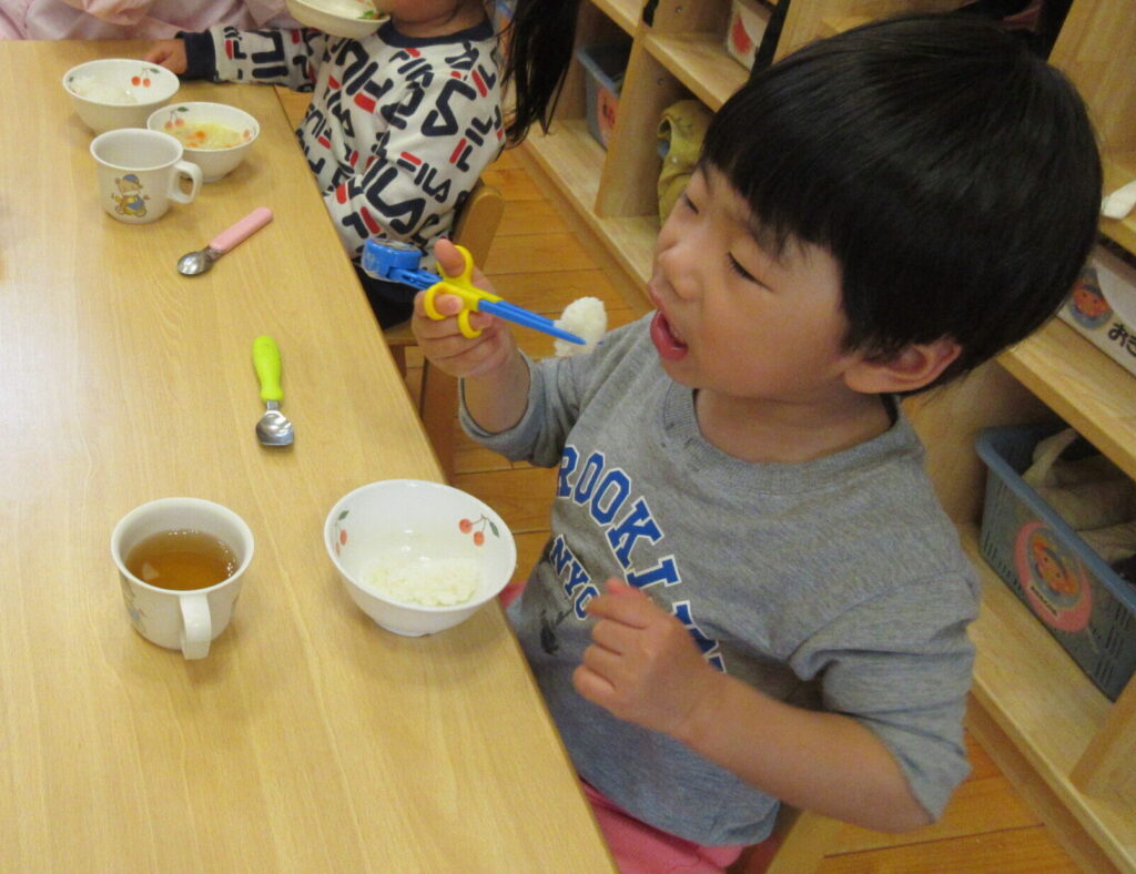 うさぎぐみさんは、1月の終わりから、箸を使うようになりました。