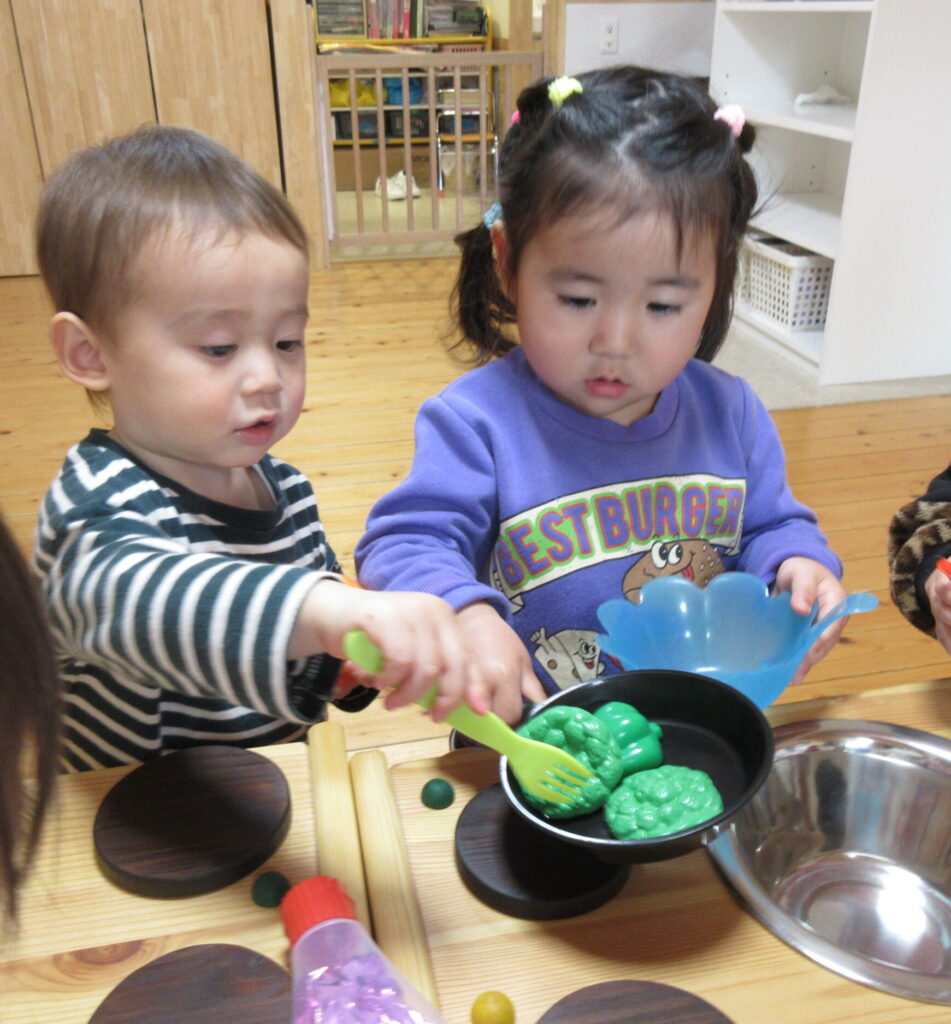 キッチンを使って、おままごとです。