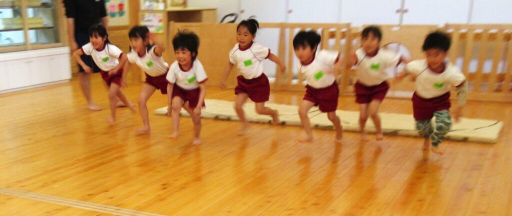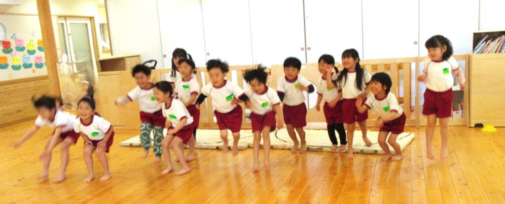 縄跳びは早く縄を回せるお友達、縄をゆっくり回すお友達いますが、