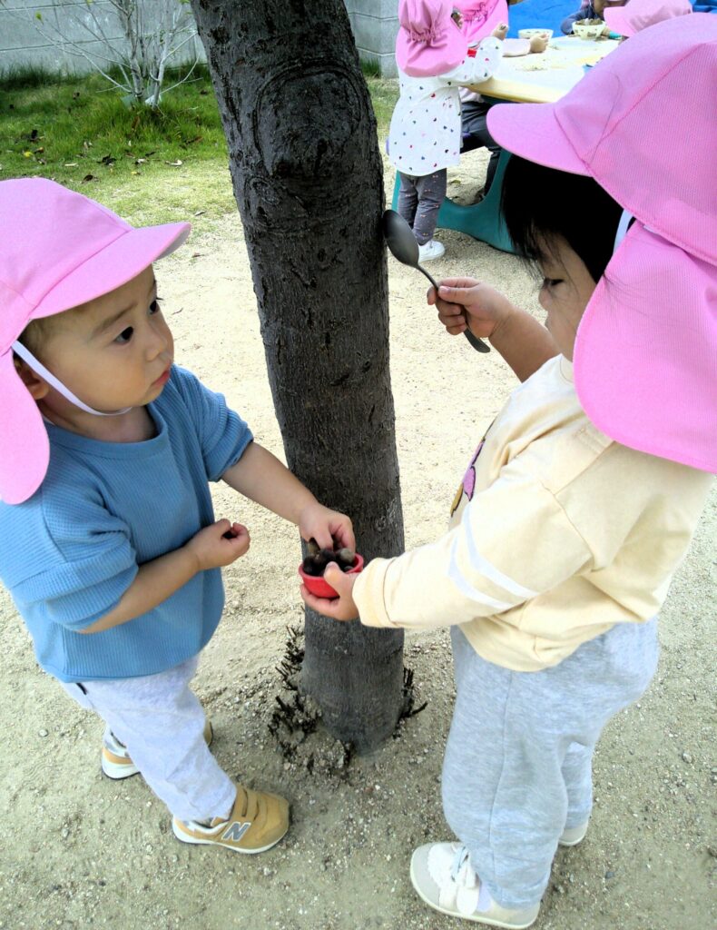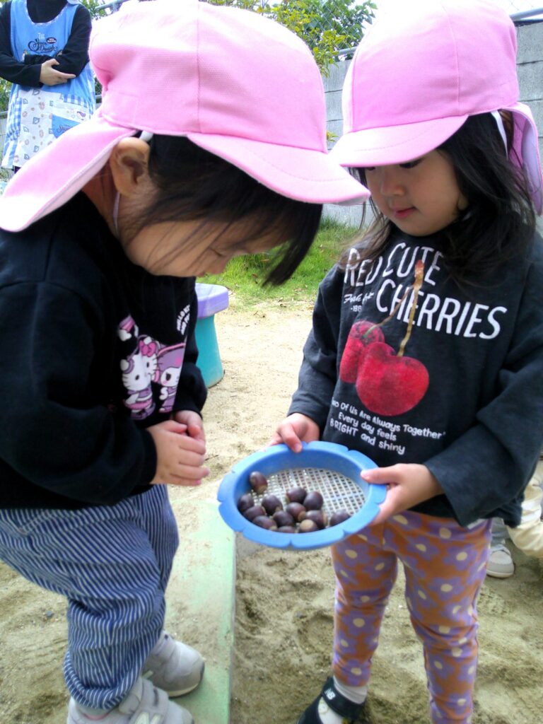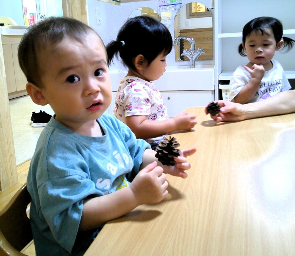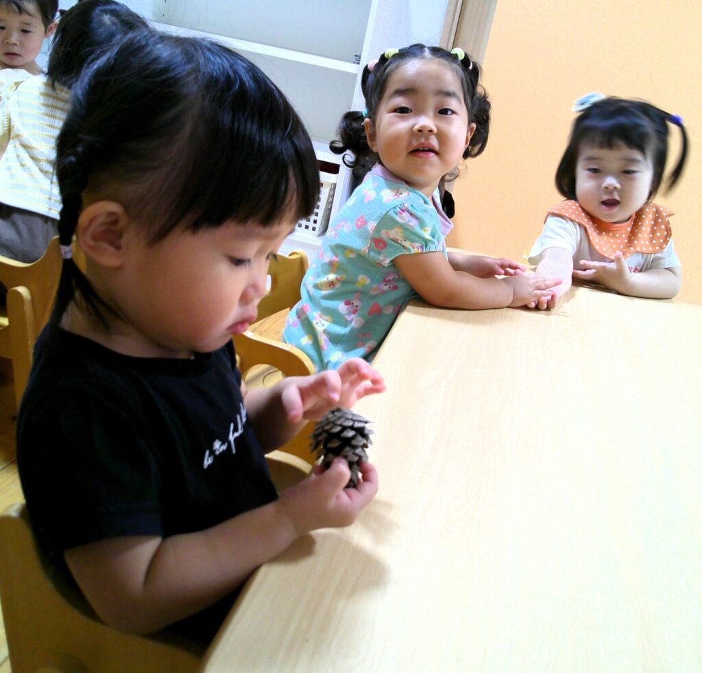 神社のそばに落ちている『どんぐり』『まつぼっくり』を先生が持ってきてくれました。