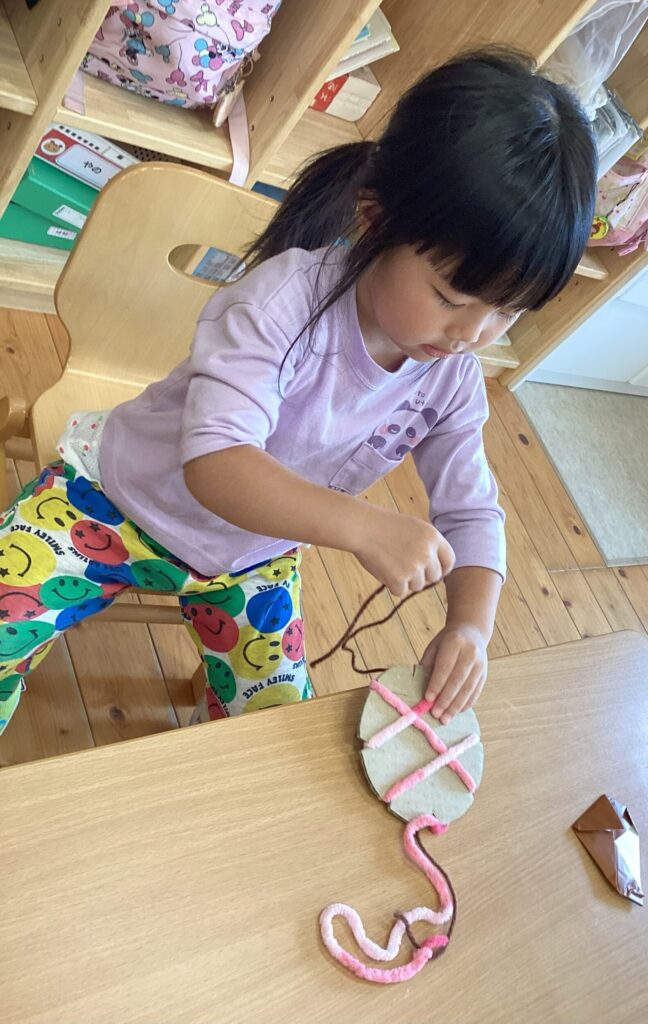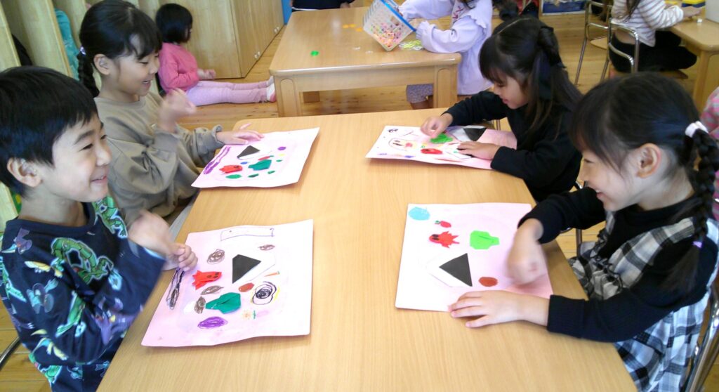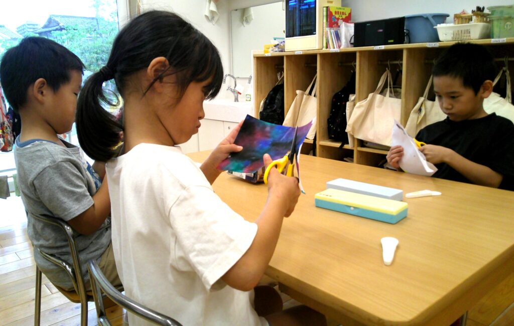 下書きをして切る子もいれば、フリーハンドで切ることにチャレンジする子もいます。