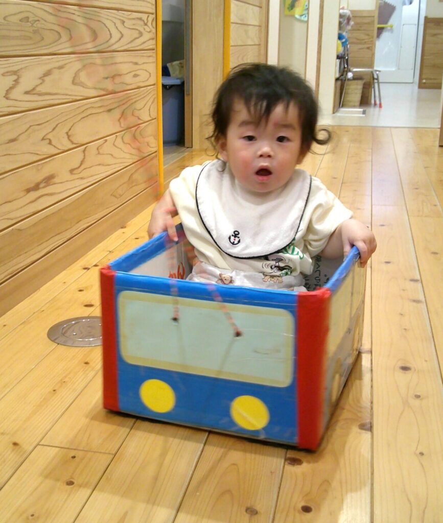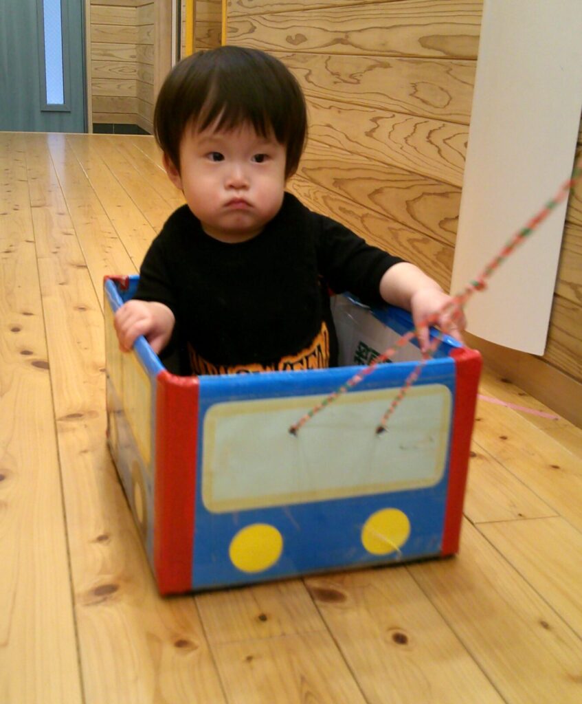 ひよこぐみさんは、先生に箱車に乗せてもらい園内ツアーへ行きました。