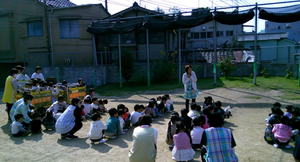 驚きながらも、すばやく全園児、職員が園庭に避難することができました。