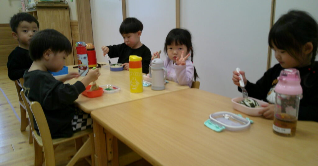作ってもらったお弁当が嬉しくて、みんな「みて~‼」