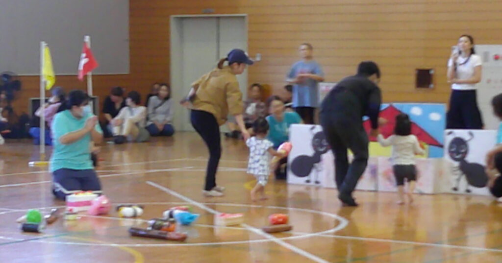 見せ場は、あかぐみは、サイコロの目で、お家の方に抱っこしてもらったり、