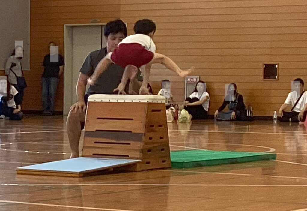 鉄棒と跳び箱で、お家の方にみてもらいたい技を選んで披露しました。