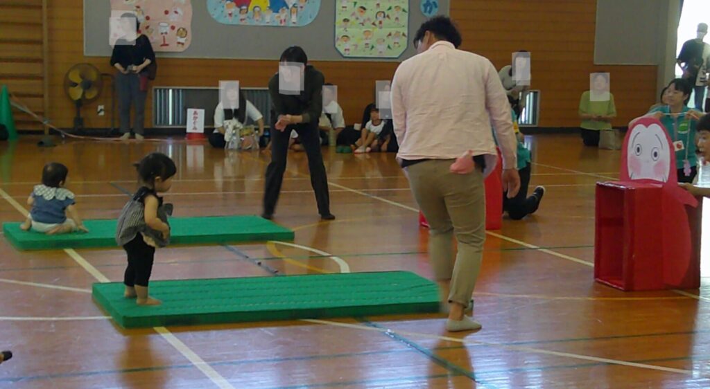 見せ場は、あかぐみは、サイコロの目で、お家の方に抱っこしてもらったり、