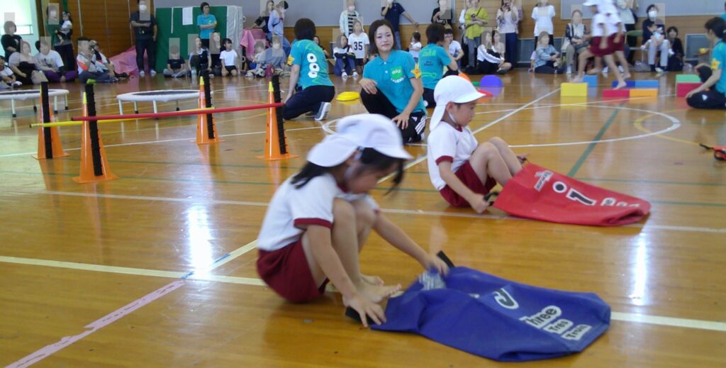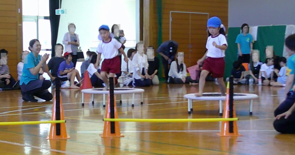 あおぐみは、ゴール前に片足跳び、リズム跳びを披露しました。