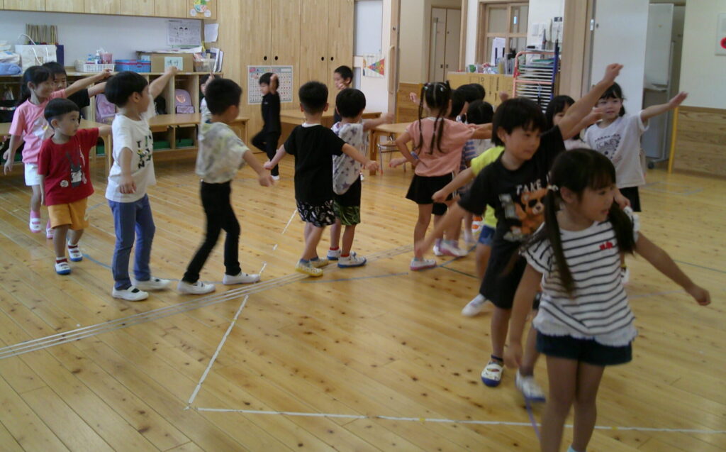 こども園では運動会の練習をこどもたちは、よく頑張っています。